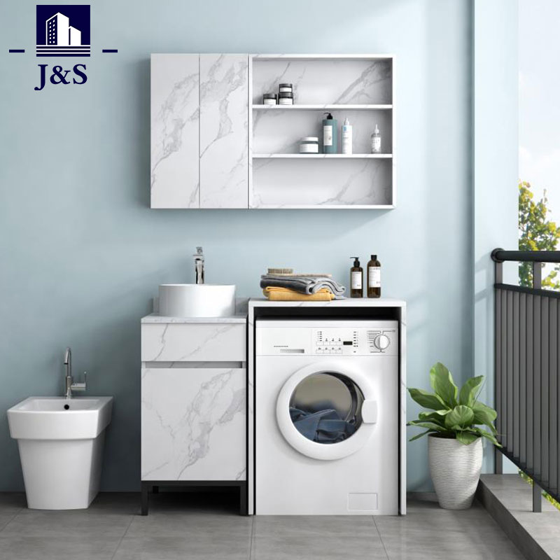 Додан је ормарић за купатило са мермерним изгледом са помоћним елементима као што су огледала, лампе за огледала и полице. Различити елементи коегзистирају, испуњени динамичном и модерном модом, чинећи вишенаменску целину, а употребне функције су такође савршеније. Ормарић за купатило изгледа мермерно је прелепо и модерно купатило. Ормар има добру текстуру када се додирне руком и лако се покреће.
