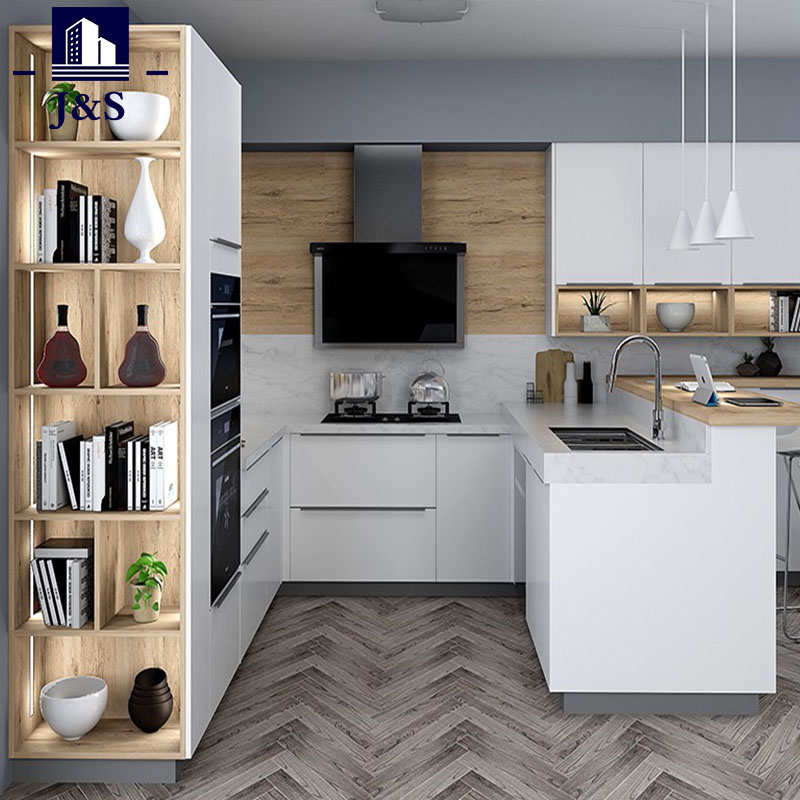 Ј&С испоручује готове кухињске ормариће, ово је дизајн кухиње у облику слова У. Ј&С је специјализован за кухињске ормаре, ормаре, ормаре по мери за стамбени пројекат са конкурентном ценом и флексибилном услугом.